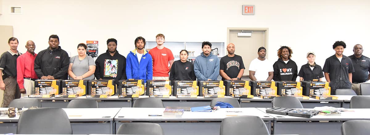 Eighteen South Georgia Technical College students received the new Erica Scannavino Scholarship recently for students enrolled in the Automotive Technology, Auto Collision and Repair Technology, and High Performance Engines Motorsports programs.