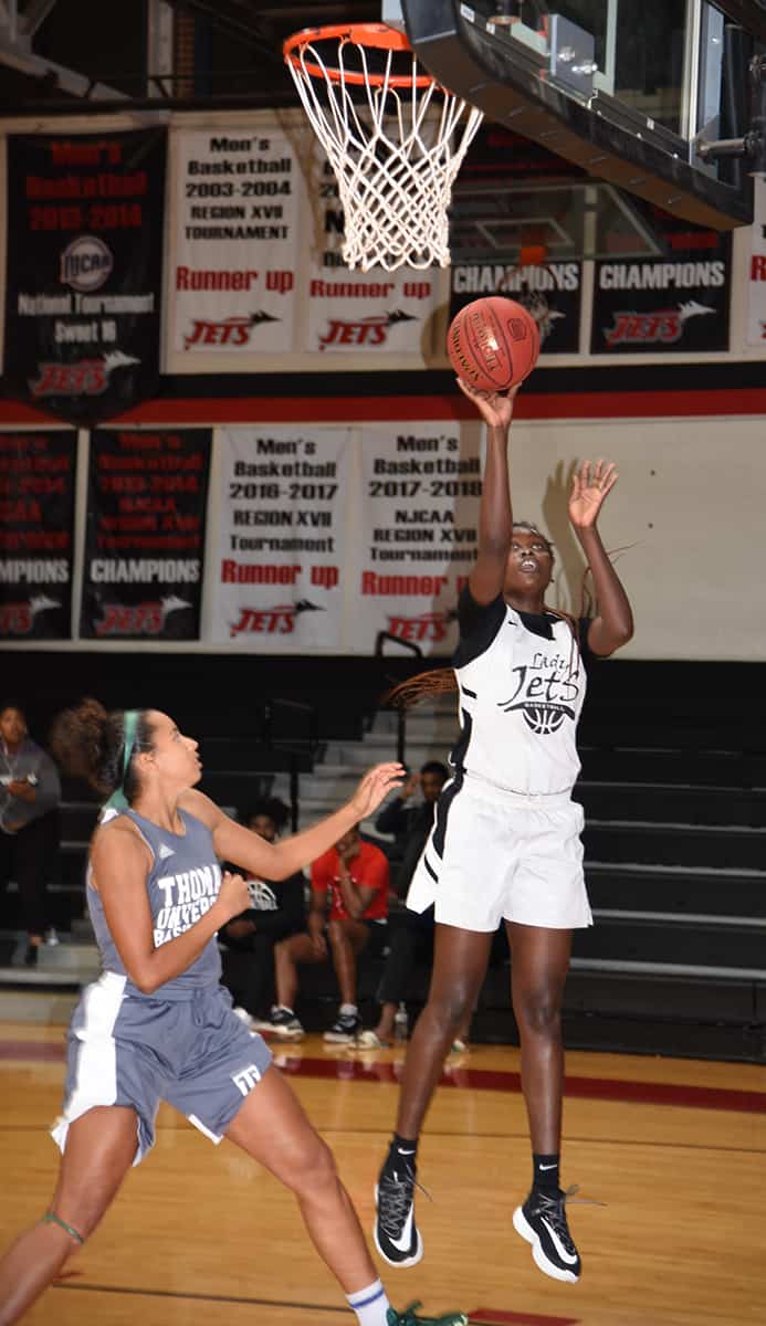 The Lady Jets were scheduled to play Thomas University on Saturday at 1 p.m. but the threat of dangerous weather postponed that match-up until 2 p.m. Sunday. The weather delay definitely helped the Lady Jets as they rolled to a 90 – 48 win over Thomas University in that scrimmage.