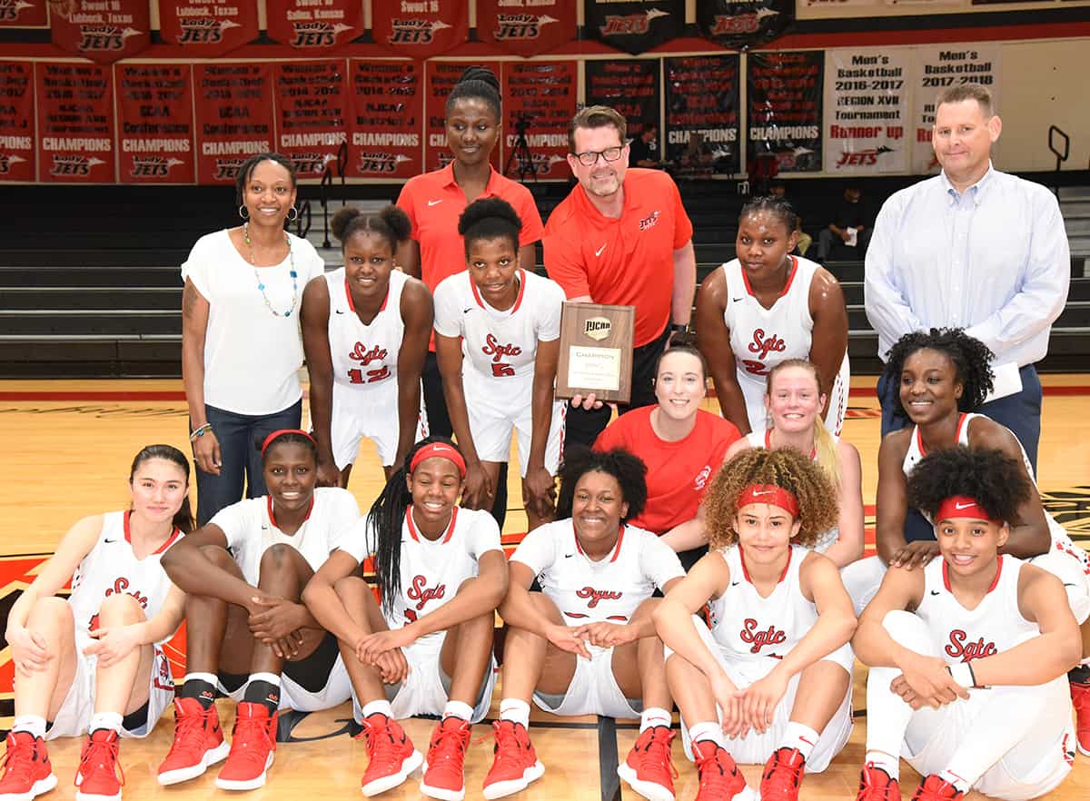 The South Georgia Technical College Lady Jets rolled to an impressive 100 – 51 victory over the Spartanburg Methodist Lady Pioneers from Spartanburg, S.C., in the National Junior College Athletic Association (NJCAA) Division I District J Championship game in Americus, Saturday, to earn a spot in the NJCAA Division I National Tournament for the third consecutive time and fifth time in six years.