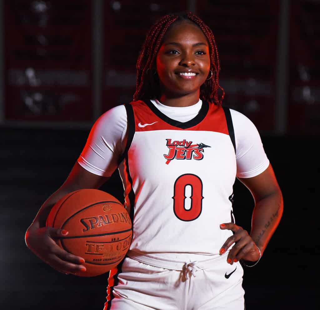 In the Lady Jets match-up against St. Petersburg College, the Lady Jets had to come from behind to take the 71 – 63 victory. The Lady jets fell behind 10 – 6 at the end of the first quarter but rallied to tie the game at 22 – 22 by the half. The Lady Jets outscored St. Petersburg 23 – 17 in the third period and 26 – 24 in the fourth to capture the 71 – 63 victory.