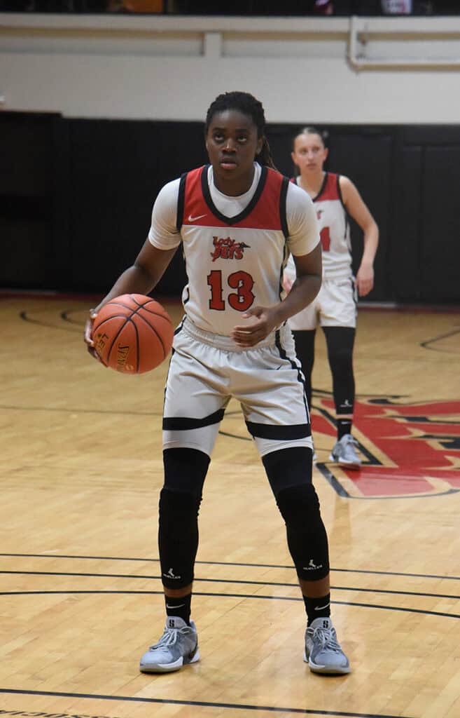 The Lady Jets held Eastern Florida scoreless in the final three minutes to tie the game at 51 – 51 at the final buzzer and force the game into a five-minute over-time.  Three Lady Jets scored 20 points in five minutes to secure the 71 – 62 victory over their nationally ranked opponent.