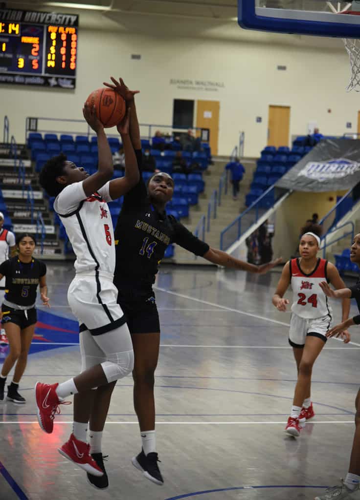 Lubbock, TX – The 9th seeded South Georgia Technical College Lady Jets captured a big first round 77 – 26 win over the 24th ranked Monroe College Mustangs in the National Junior College Athletic Association (NJCAA) Division I Women’s basketball national tournament at the Rip Griffin Center in Lubbock, Texas, and set a new NJCAA tournament record for fewest points allowed.