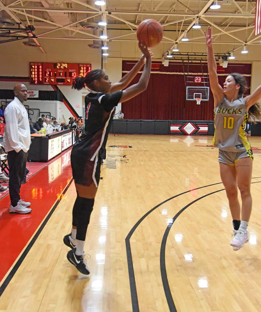 Despite a slow start, four members of the Lady Jets did score in double-digits. Freshman Ja’Niya Broome of Harris County led the team in scoring with 19 points. Sophomore guard Jaidyn Elam from Pontiac, MI, was close behind with 18. Sophomore Jada Jones tossed in 15 points and sophomore guard Tanja Bennett followed with 10 points. Freshman Candice Ganga and sophomore Glory Kaine closed out the scoring with one point each.