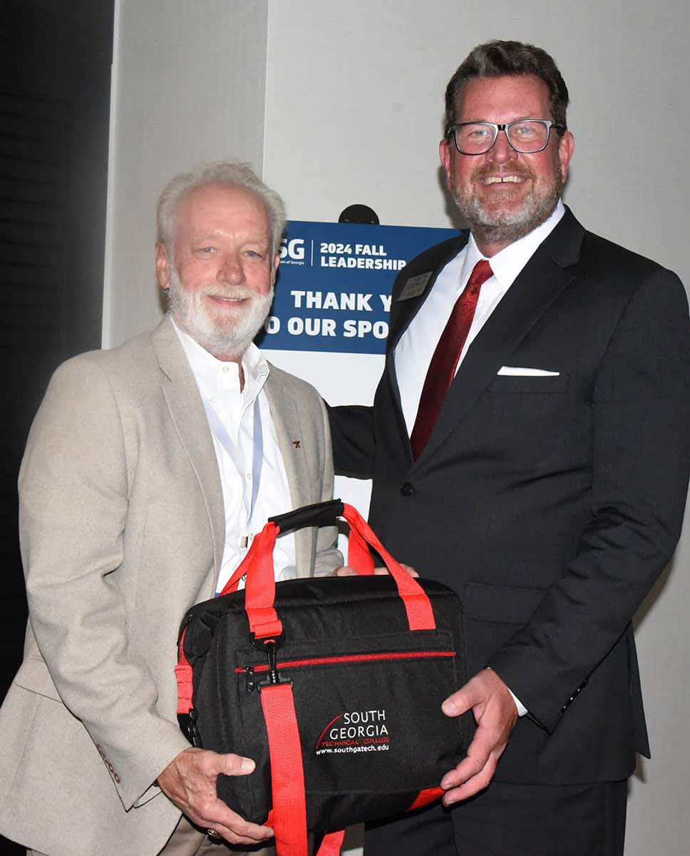 South Georgia Technical College President Dr. John Watford is shown above presenting a token of appreciation from the college to SGTC Alumni of the Year Dan Linginfelter for his outstanding achievements in the field of aviation maintenance.