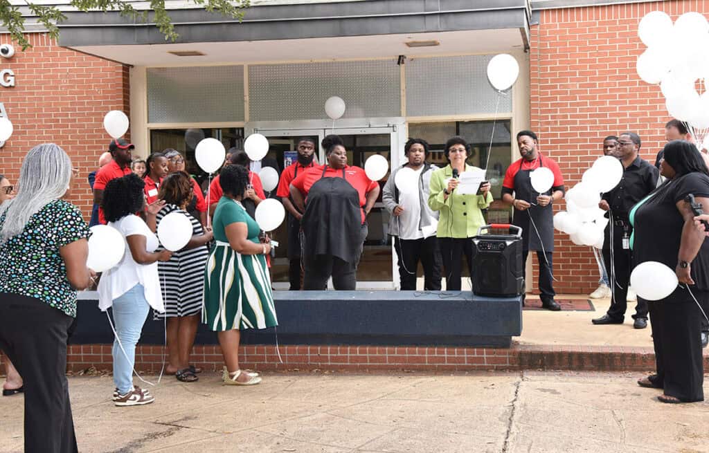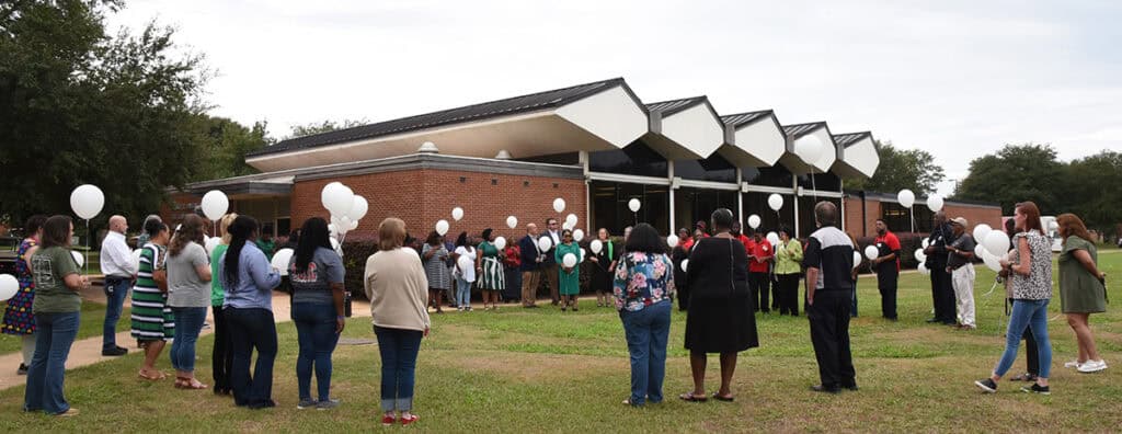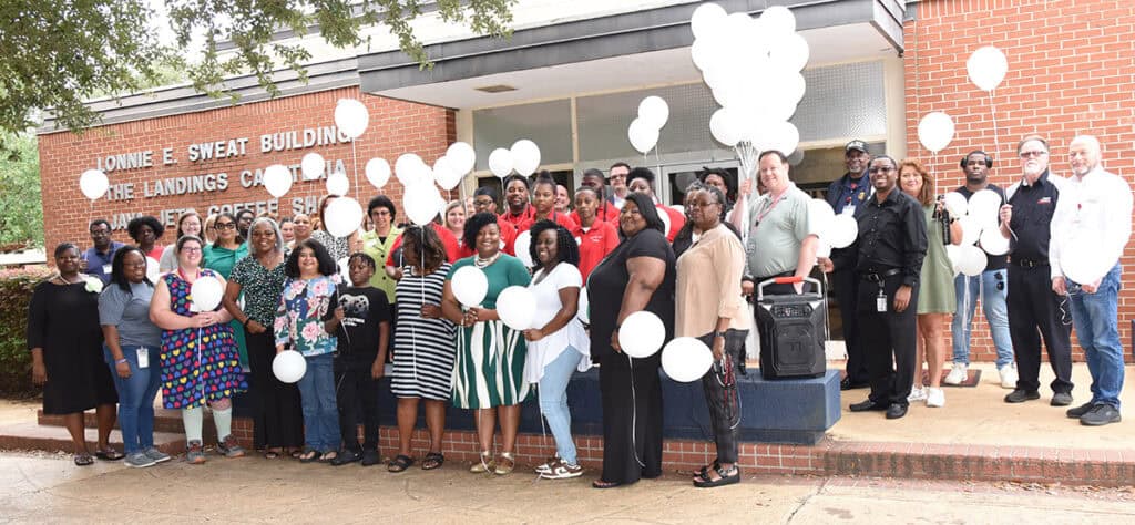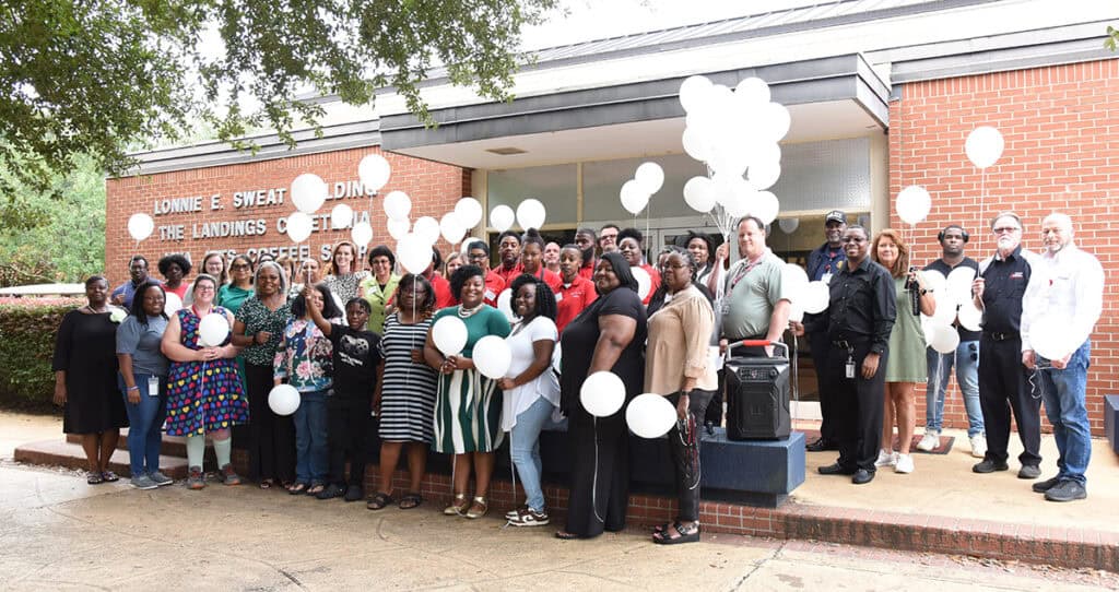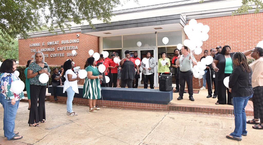 South Georgia Technical College faculty, staff, students and ARAMARK employees honored the memory of long-time SGTC Cafeteria Director Shirley Trice with a memorial balloon release on Friday, October 4th on the SGTC campus outside of the Lonnie Sweat Cafeteria.