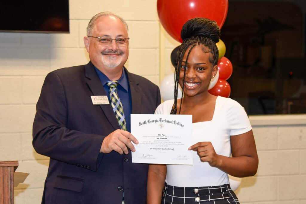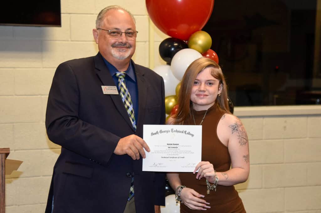 SGTC Cosmetology instructor Dorothea Lusane-McKenzie was the featured speaker for the event and offered words of encouragement to the graduates. “Always remember you must be a lifetime learner,” Lusane-McKenzie said. “Be willing to step outside of your comfort zone. Always ask questions. Challenge yourself.