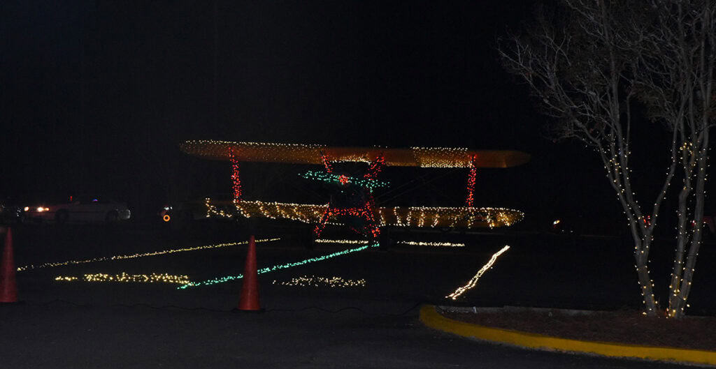 The SGTC Aviation Maintenance Department with all out with their lighted display featuring the SGTC Stearman bi-plane in lights.