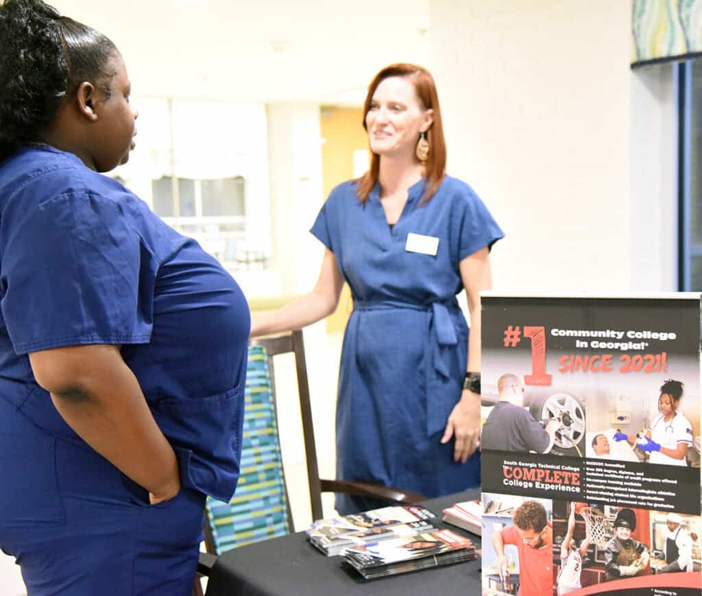 Magnolia Manor Senior Living is partnering with South Georgia Technical College (SGTC) to provide easy access to additional educational opportunities for its employees. SGTC officials visited Magnolia Manor in Americus to talk with employees about admissions procedures, financial aid, academic resources, academic programs available, and more.