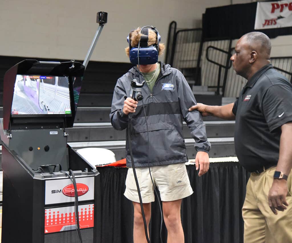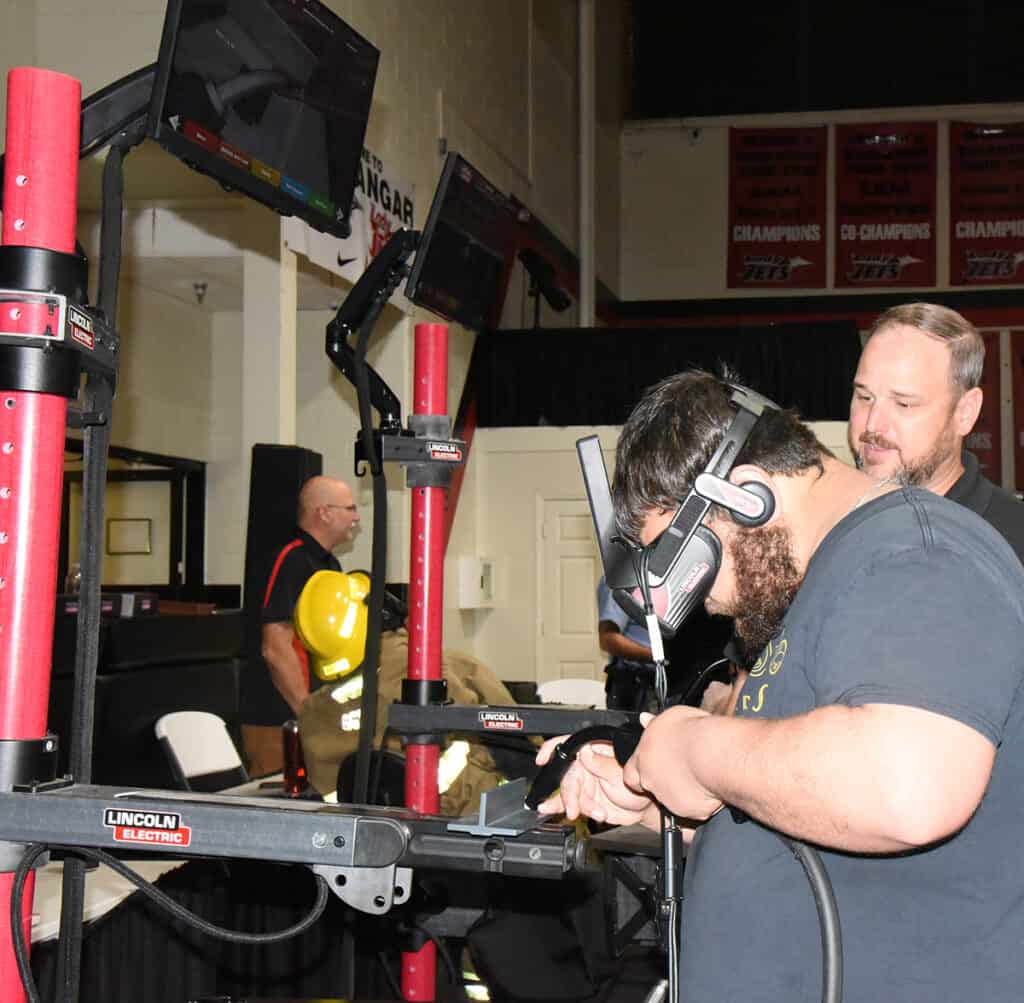 Each program instructor set up a booth or table with interactive displays that allowed students to experience what they would learn at South Georgia Technical College. The auto collision and repair program had a virtual paint program that allowed students to use 3D goggles to paint cars. The welding program allowed students to simulate welding metal. Cosmetology and Barbering program areas had manakins to show students how to braid, cut, or style hair and nails. The marketing and business programs had interactive games to challenge students and then the Financial Aid, Student Housing, WIOA, student activities and Student Affairs departments had games and activities set up for the students to enjoy. SGTC’s culinary arts students and faculty served hot dogs and sides to the students and adults who attend.