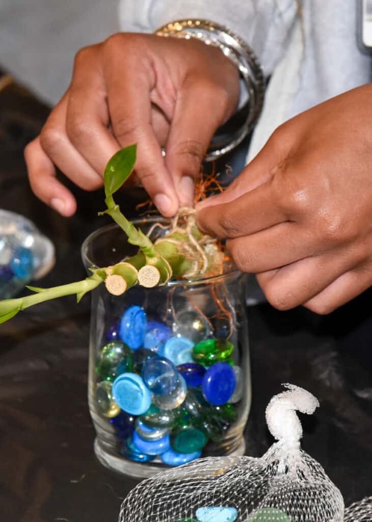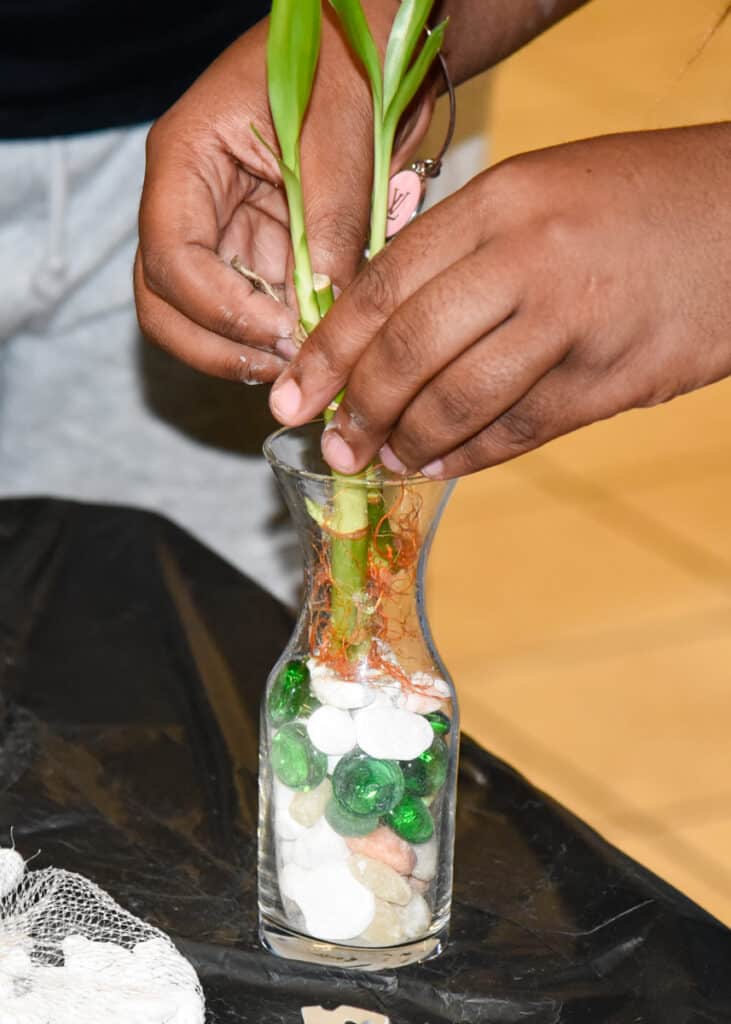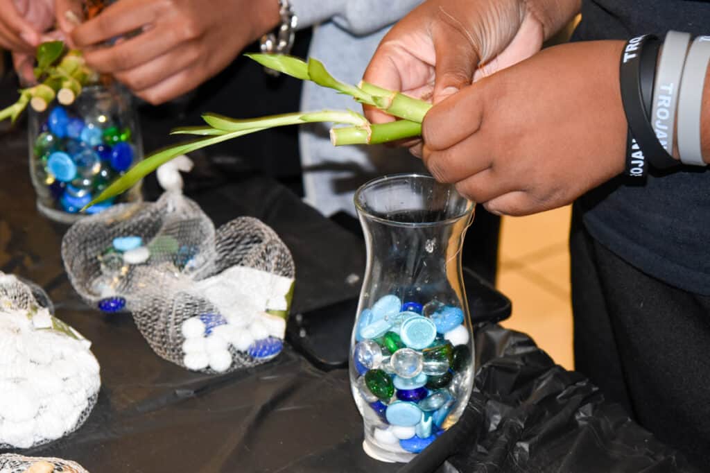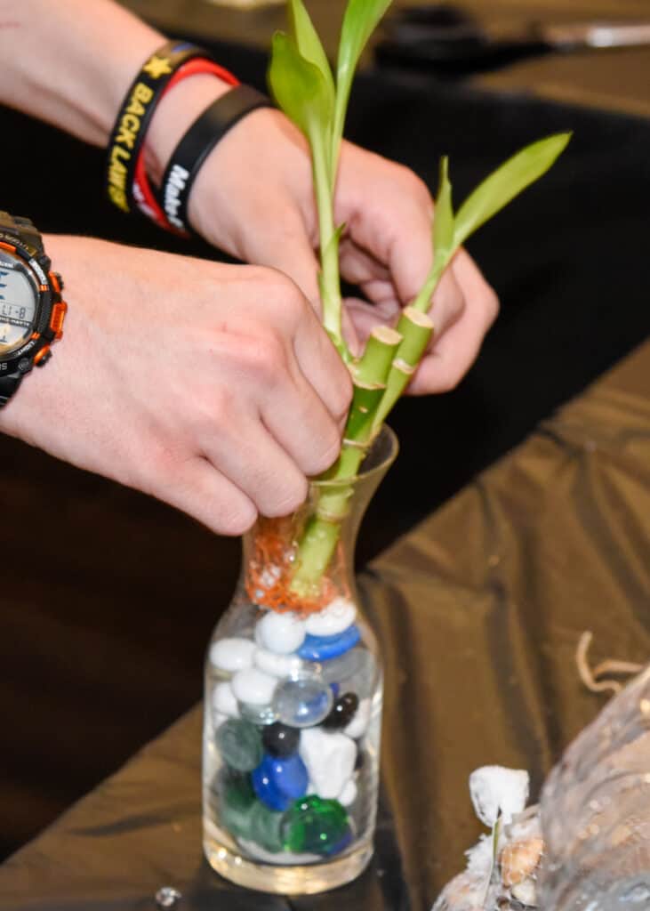 Supplies for the activity were provided for the participants. Josh Curtin, SGTC Assistant Vice President of Student Affairs, demonstrated how to assemble the bamboo arrangements.