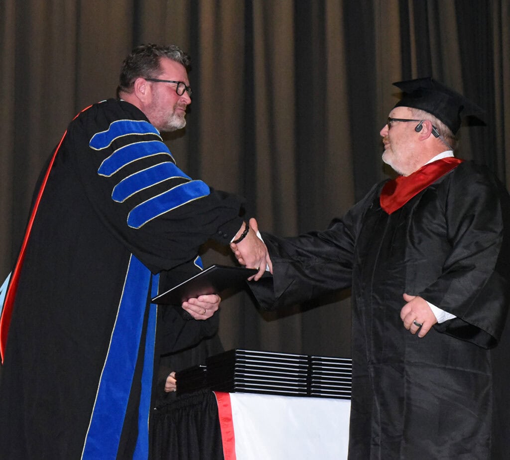 South Georgia Technical College President Dr. John Watford (left) is shown above presenting Donald Ray McCook with the Associate of Applied Science degree in Technical Studies.